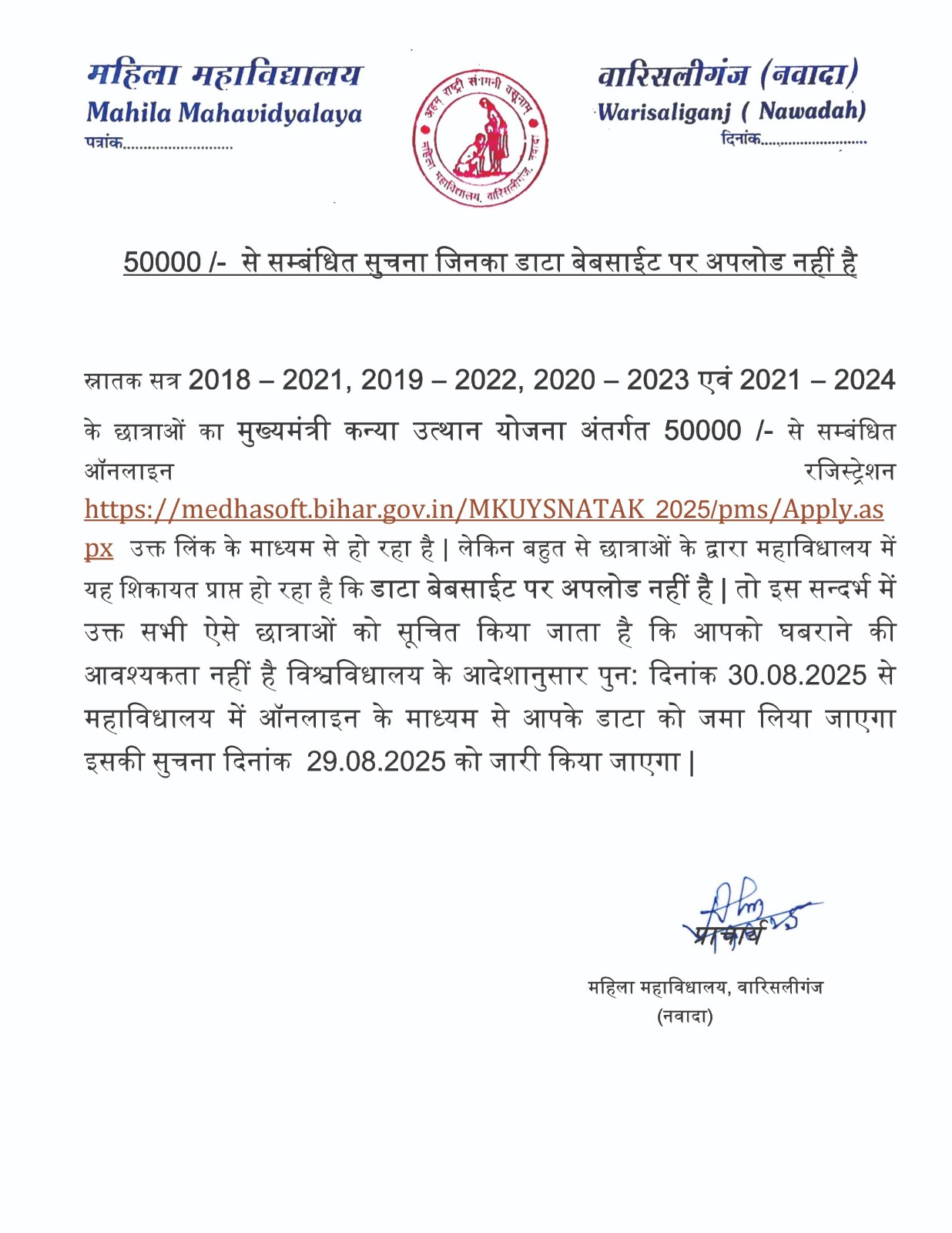 NOTICE REGARDING THOSE STUDENT DATA NOT SHOW IN KANYA UTTHAN YOJANA PORTAL